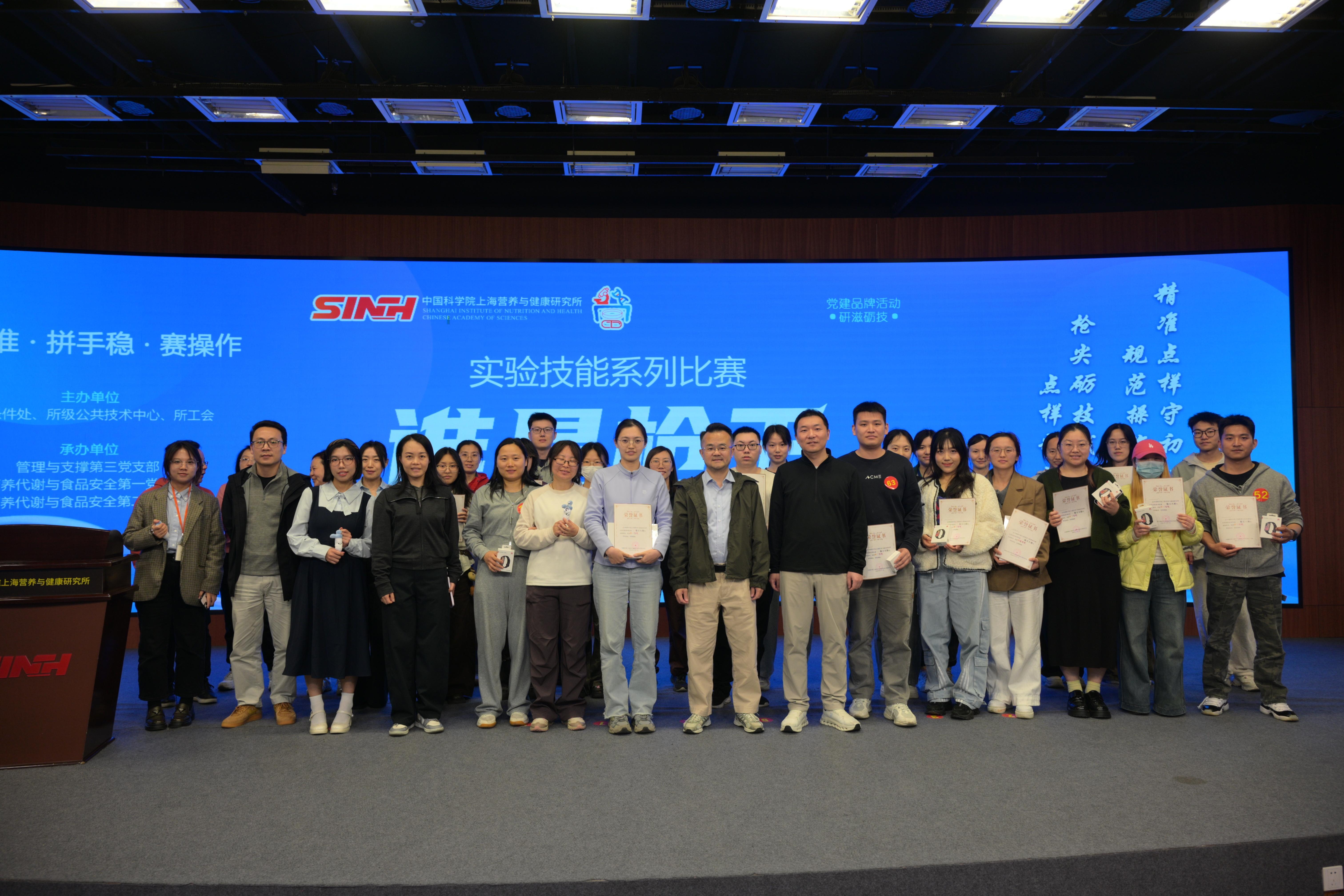 经过多轮激烈角逐,大赛共评选出一等奖1名、二等奖2名、三等奖7名及优秀奖20名。其中,王跃祥研究组的佟琳凭借其稳定出色的发挥和近乎零误差的操作,以绝对优势摘得桂冠,生动诠释了“毫厘之间见真章”的硬核实力。在随后的颁奖仪式上,所级公共技术中心主任李于、营养代谢与食品安全第二党支部书记周犇、科技条件处处长杨艳、科研条件处副处长赵晓雷、所工会副主席马勤、以及营养代谢与食品安全第一、第二党支部副书记吴玉婷、高静等分别为获奖选手颁奖并合影留念。